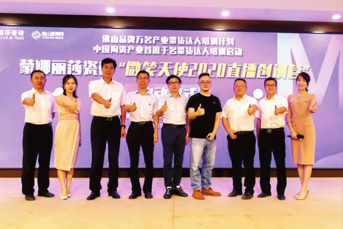 7月1日,由佛山傳媒集團佛山新聞網、佛山企業聯合會、佛山企業家聯合會共同主辦的“佛山品牌萬名產業帶貨達人培訓計劃”暨蒙娜麗莎瓷磚“微笑天使2020直播創訓營”啟動儀式在蒙娜麗莎集團西樵總部舉行。佛山市委網信辦、佛山市信息網絡中心、佛山企業業聯合會黨支部、南海區經促局、佛山市企業聯合會等單位領導、佛山新聞網相關領導以及集團董事會、高管團隊出席本次啟動儀式,吸引了上萬人參與啟動儀式在線直播。