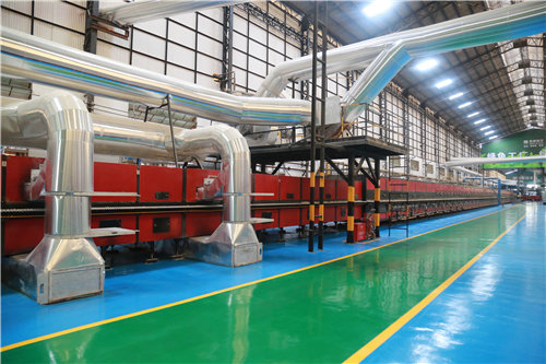 能在如此嚴苛的環保條件中脫穎而出,蒙娜麗莎的工廠本身就是一個標準的“綠色制造”樣本。走進其陶瓷薄板示范車間,綠色通道光亮如鏡,窯爐生產線被“裝”到一排像高鐵車廂般的紅色箱子內,窗明幾凈的車間不見粉塵,完全不復人們印象中的臟亂差陶瓷生產場景。