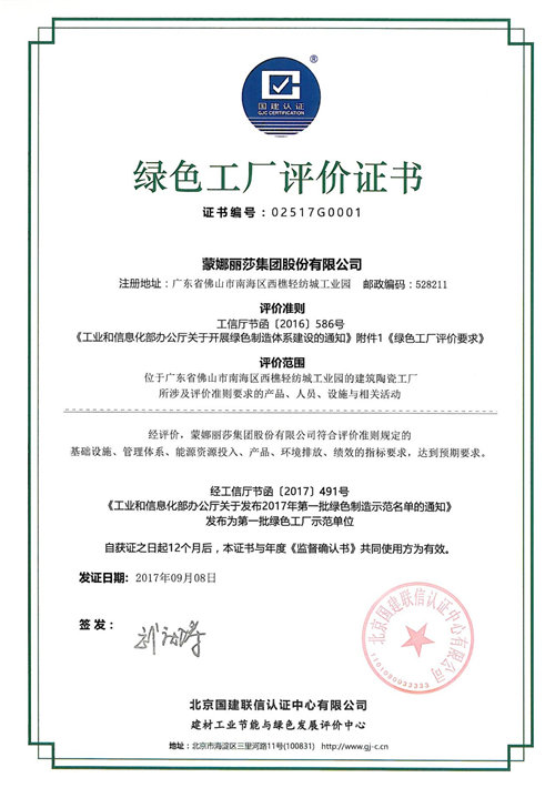 事實上,除了連續三年蟬聯佛山綠牌外,在去年8月工信部發布的2017年第一批綠色制造示范名單中,蒙娜麗莎已入選為綠色工廠。