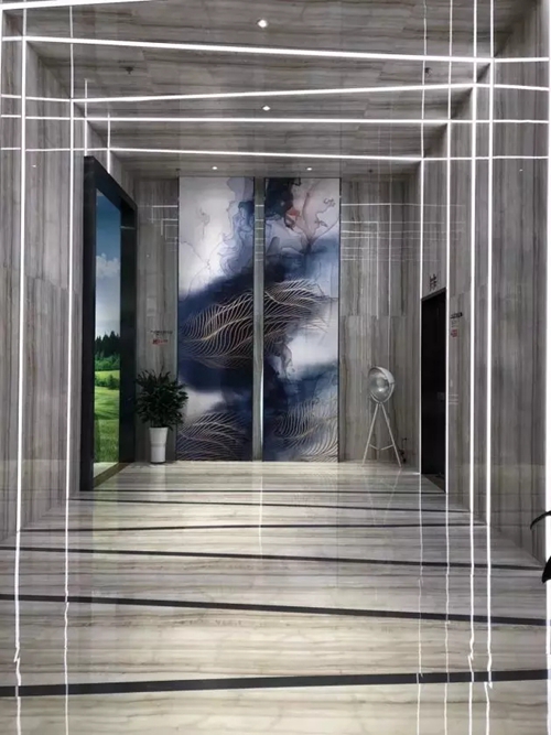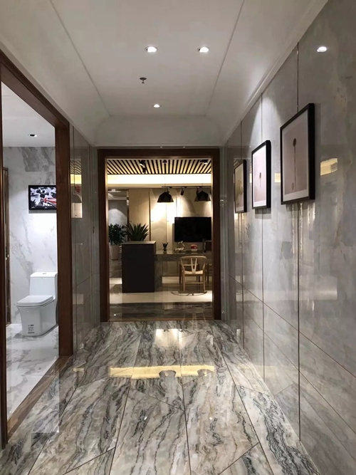 完美的石材紋路需要更為延展的承載空間,2017年,蒙娜麗莎在引進國際先進技術裝備的基礎上,成功推出1200×2400mm大規格陶瓷大板。顛覆以往陶瓷磚600×600mm、800×800mm的普通規格,蒙娜麗莎陶瓷大板擁有1200×2400mm大規格尺寸,能最大限度地承載豐富的紋理圖案和細節,視覺效果高清立體,鋪貼效果奢華大氣,極大的滿足酒店、別墅、商場等高端場所對奢華氣派的裝飾需求。