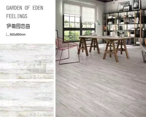 花色精美,品種豐富,亞光與亮光兩種釉面效果搭配組合,與仿石類拋釉磚產品結合應用,形成木、石結合的裝修搭配設計,為設計師提供設計創意,為客戶提供更多個性選擇,能廣泛引用在新穎的建筑和室內設計,實現經典、現代時尚等多種風格應用。相對于傳統木地板,“伊甸園戀曲”系列木紋磚可駕馭更多空間區域。